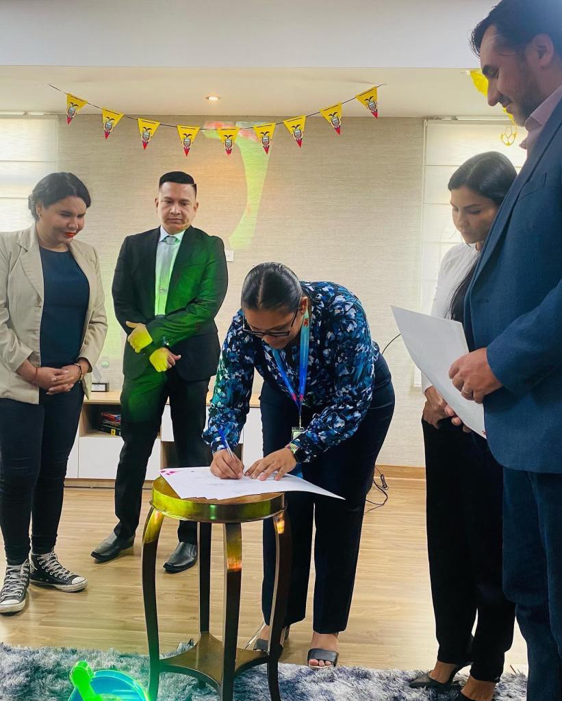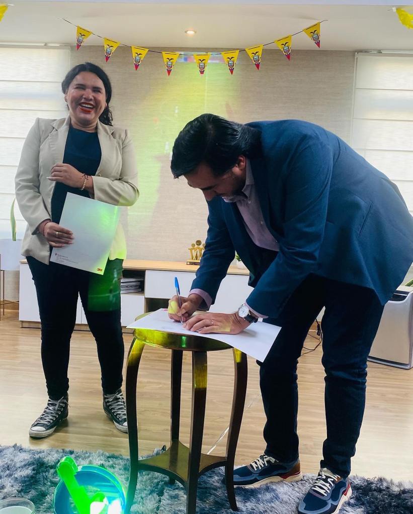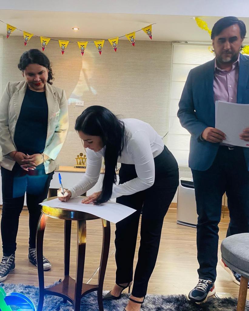 Así mismo estuvo la CEO de la Cámara LGBT+ de Comercio Ecuador, Diane Rodríguez y Leonardo Romero, representante regional de Pride Connection Ecuador, quienes firmaron el acta.