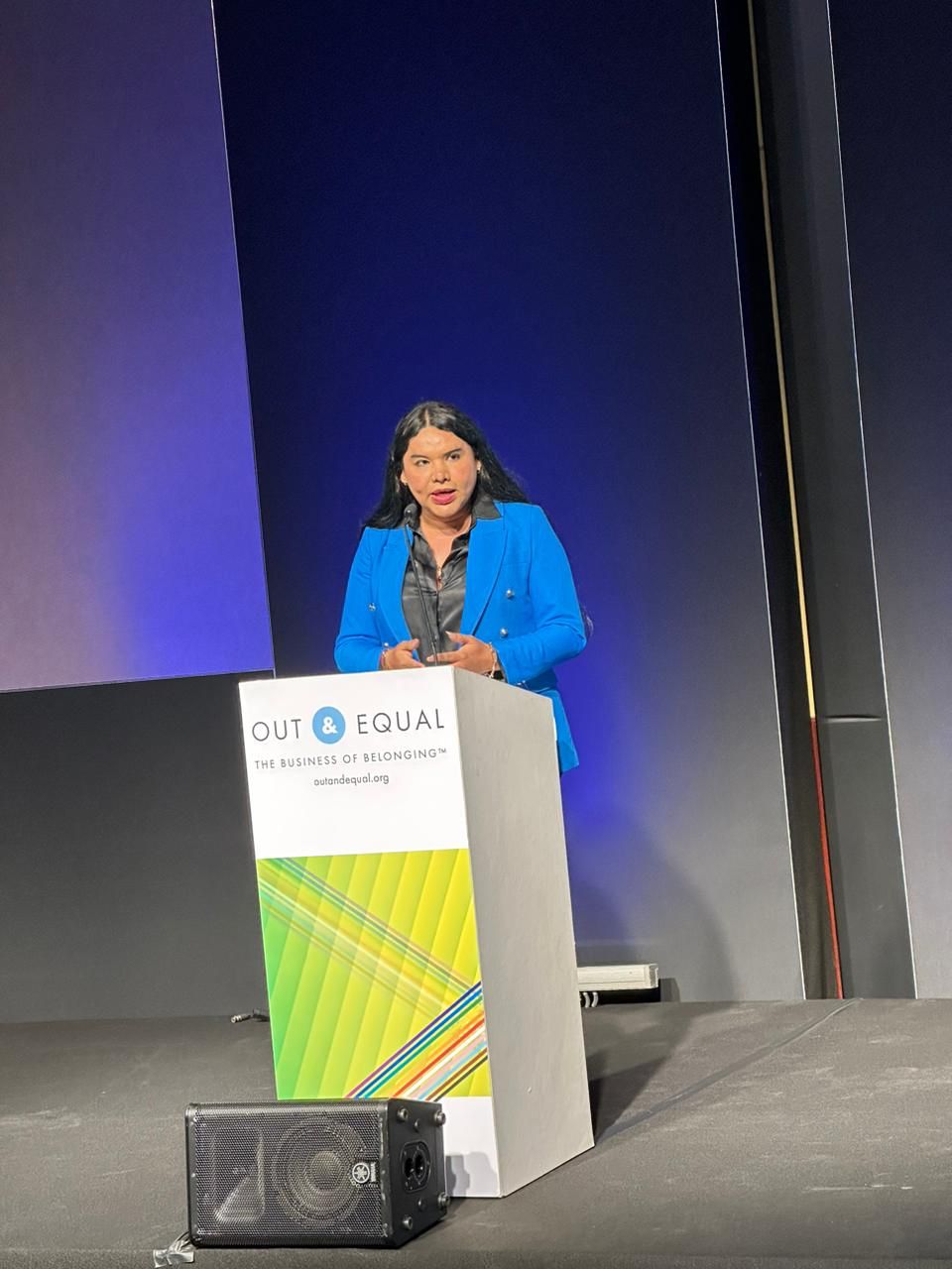 Hola, muy buenas tardes. Muchas gracias a Out & Equal por su gentil invitación. Mi nombre es Diane Marie Rodríguez Zambrano, soy ecuatoriana, bisexual y durante toda mi vida me he identificado como una mujer trans, pero en los últimos años me siento más cómoda en el espectro no binarie.