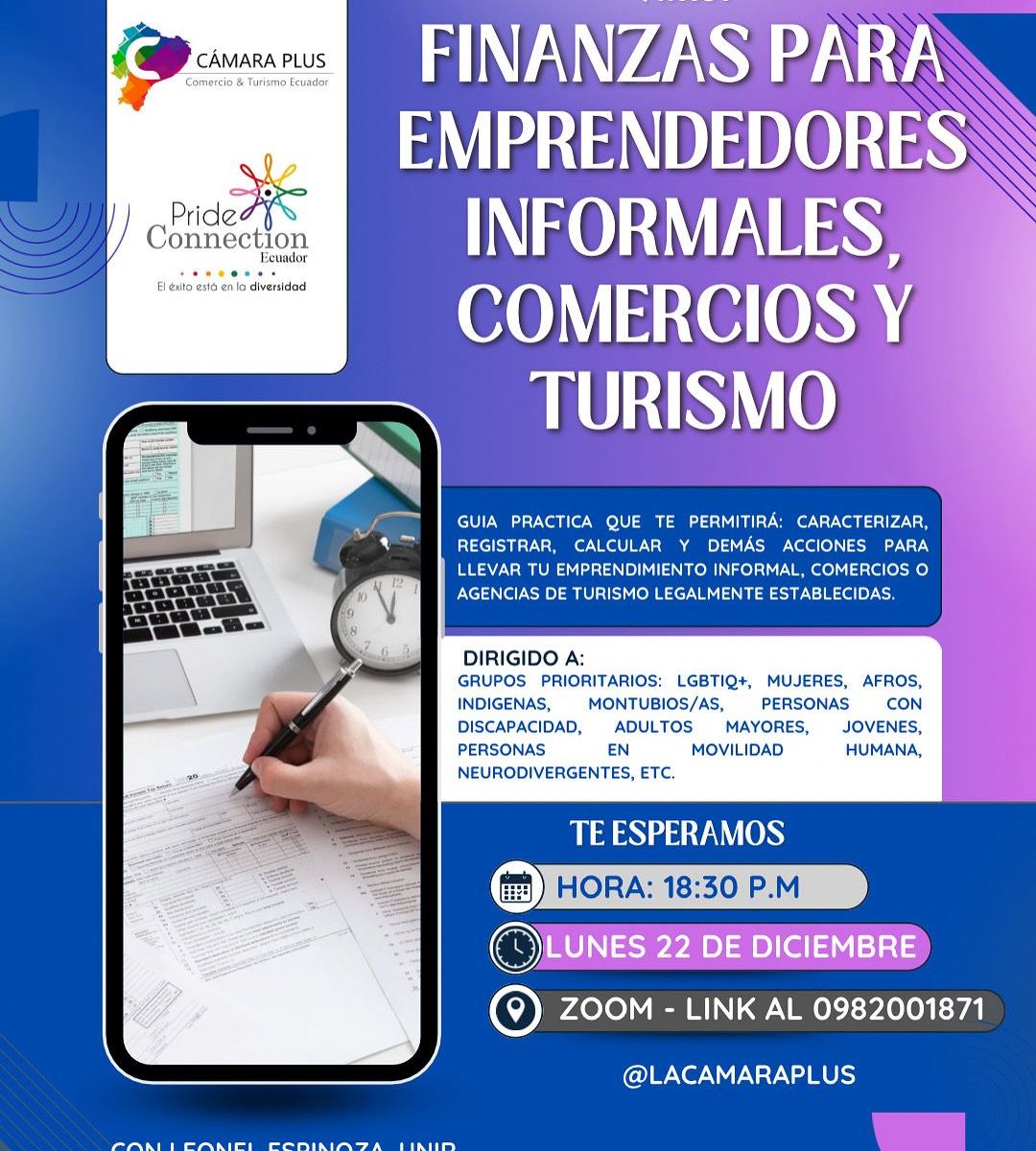 En Pride Connection Ecuador, sabemos que el camino hacia la inclusión real también pasa por la independencia económica. Por eso, nos unimos a @LaCamaraPlus para invitar a toda nuestra comunidad al taller: «Finanzas para Emprendedores Informales, Comercios y Turismo».