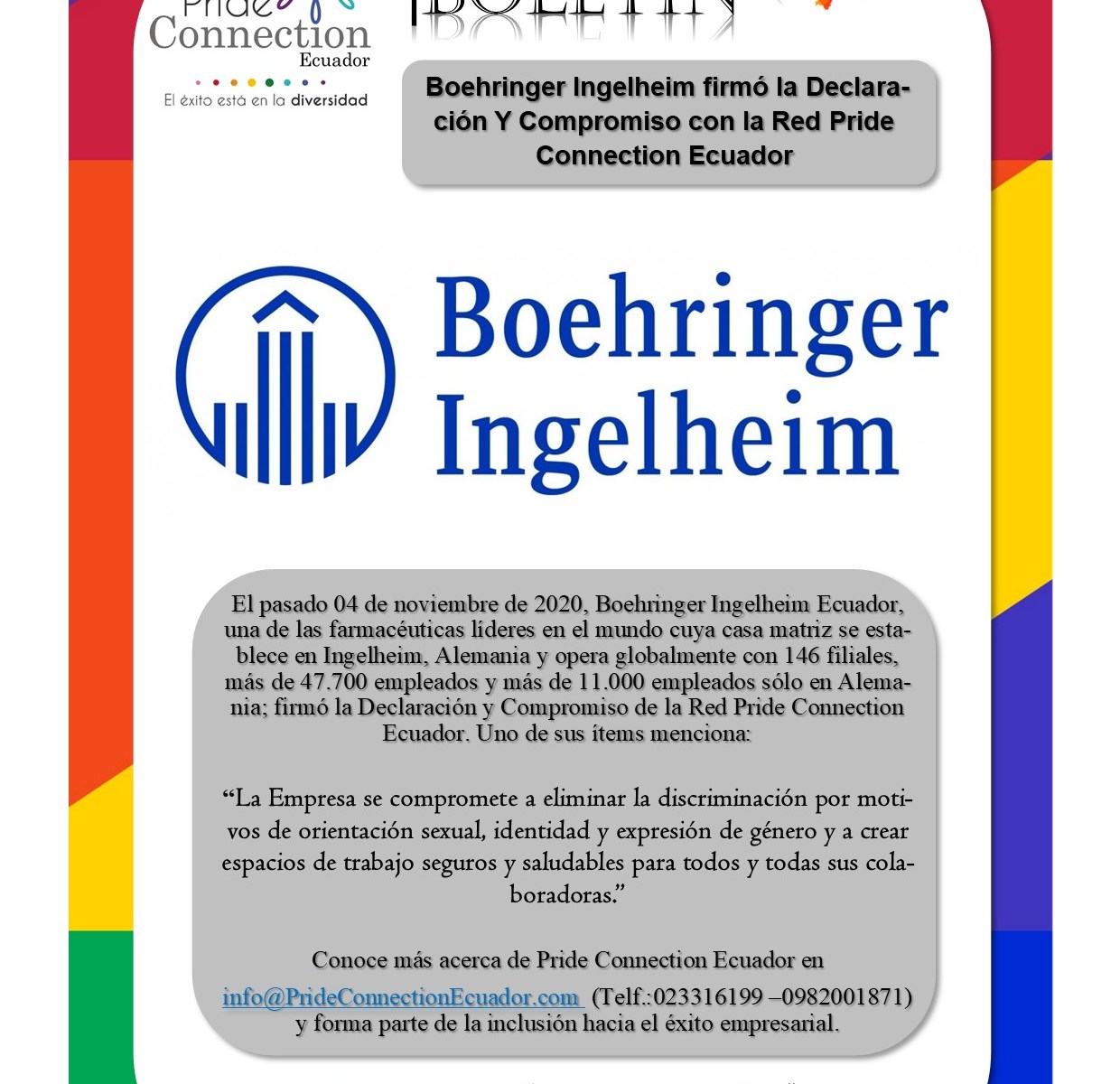 Boehringer-Ingelheim firmó la Declaración Y Compromiso con la Red Pride Connection Ecuador El pasado 04 de noviembre de 2020, Boehringer Ingelheim Ecuador, una de las farmacéuticas líderes en el mundo cuya casa matriz se establece en Ingelheim, Alemania y opera globalmente con 146 filiales, más de 47.700 empleados y más de 11.000 empleados sólo en …